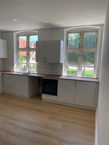 Belonging to Aastrup Monastery you will find Avlsgården, which houses three other tenancies. This is located on its own with its own entrance and access to a small garden. Here you will get a beautiful large newly renovated and stately apartment, with a large brand new eat-in kitchen centered in the middle of the apartment, as well as a large high-ceilinged living room with stucco and old fireplace, the original wooden floor, and with a view of the beautiful Aastrup Monastery. In addition, there is a large room also with the original wooden floors, and a brand new bathroom. At the other end of the apartment there are 2 rooms, a newer bathroom, and a larger laundry room with the possibility of installing a washing machine and dryer. In addition to its own garden, there is a large courtyard with free parking, and a small common area. The monastery's main building consists of three wings. The first wing was begun in 1588, and in 1613 a two-winged structure was completed; the year can be seen in wall anchors and on a sandstone coat of arms above the gate. A third wing was added in 1856. The monastery has a very interesting history with many changing ownerships and can be followed under the name Aastrup Hovedgård all the way back to the 15th century. The monastery has 25 hectares of beautiful parkland. On Aastrupvej you get ample access to silence and beautiful natural historical surroundings. Tenants must purchase their own washing machine, dryer and dishwasher. Not rented out as a shared home. Consumption costs are not included.If you want to read the description in its original language that is also possible. Read original description
