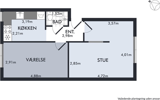 Lyngby Station Apartment – 2 Spacious Rooms and a Large Kitchen