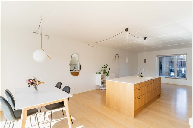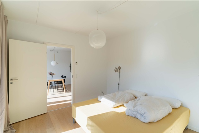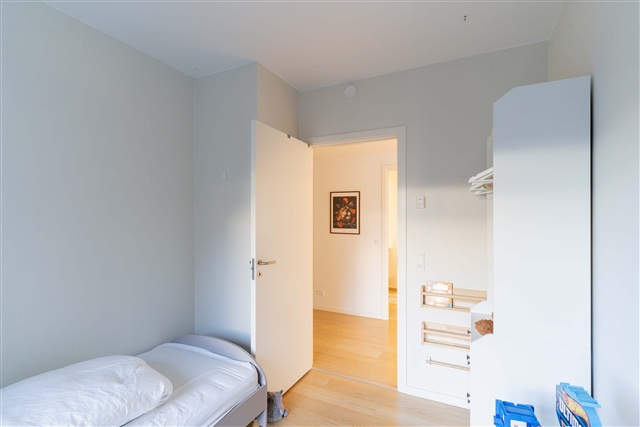 From the living room there is access to a large balcony, where there is ample space to set up with both a café table or lounge furniture, and here you can enjoy the afternoon and evening sun in quiet surroundings.