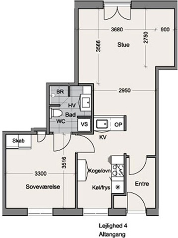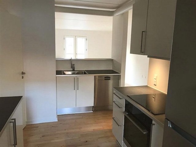 In a lovely property in the heart of Odense you will find this bright and well-furnished 2-bedroom apartment. The rental includes an entrance hall, an open kitchen-dining room with access to a balcony, a bedroom with built-in cupboards and a lovely bathroom with underfloor heating.The apartment is equipped with a stove, refrigerator, extractor hood, dishwasher, washing machine and dryer - everything you need for a comfortable everyday life.