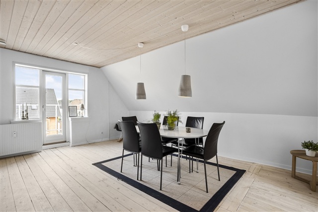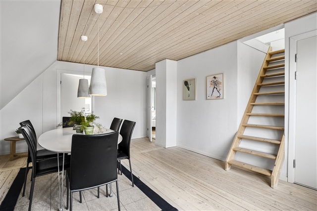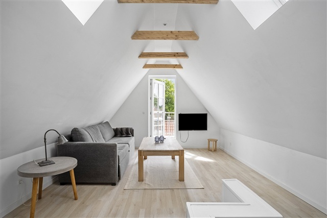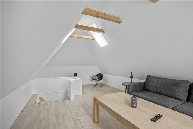 In addition, the apartment offers a super cool and well-utilized 2nd floor, which is furnished in a residential condition and supplements the specified living square meters so that the total area is 87 square meters. Here there is a pitched ceiling and visible beams, which give a fantastic charm. On the 2nd floor there is access to an absolutely fantastic south-facing roof terrace, where the sun can be enjoyed all day.