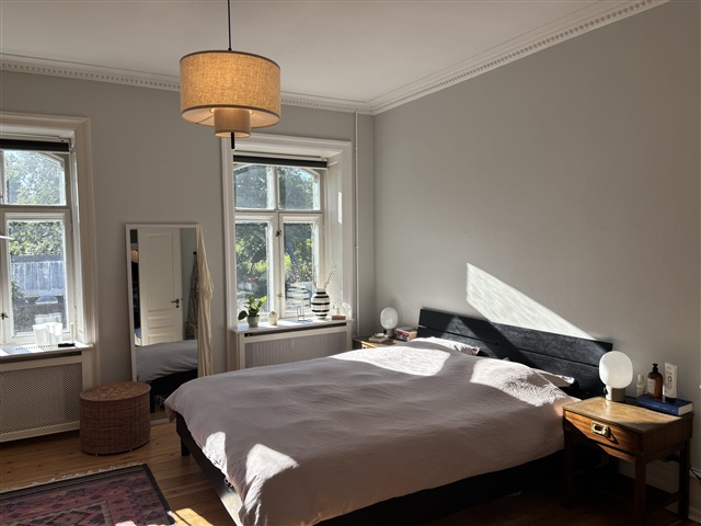 This apartment is only available FROM DECEMBER 9, 2025, TO FEBRUARY 4, 2026 (8 weeks), and we are looking for somebody to rent for the full period (or close to). The apartment is NOT available before Dec. 9, 2025, or after Feb. 4, 2026.This 5-room apartment consisting of 144 square meter is situated just by the Lakes in Copenhagen on a quiet street. It is on the 1st floor of a beautiful late 1800-century building and the building has a big, shared courtyard, where it is possible to park bikes, and where kids can play.