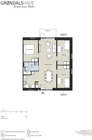 Large and bright 4-bedroom apartment, where the entrance is integrated into the open living room that extends from one end of the apartment to the other. There is plenty of space for both the dining area and the living room. The kitchen is in open connection to the family room, but is slightly screened off and designed as a functional corner kitchen. From the large living room there is access to three bedrooms, all with built-in wardrobes, as well as to the bathroom. From the living room there is access to a large balcony or terrace, which extends the home with a beautiful outdoor space. Common facilities in Grøndals GårdAs a resident of Grøndals Gård, you have access to a large, green courtyard with cozy paths and living areas that invite you to socialize and enjoy the outdoors. Here you will also find a spacious shared orangery with space to eat, socialize, play board games or meet spontaneously with your neighbors. The homes include a parking space, and charging stations from Clever have been installed, so that everyday life is both easy and future-proof.If you want to read the description in its original language that is also possible. Read original description
