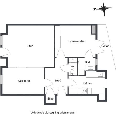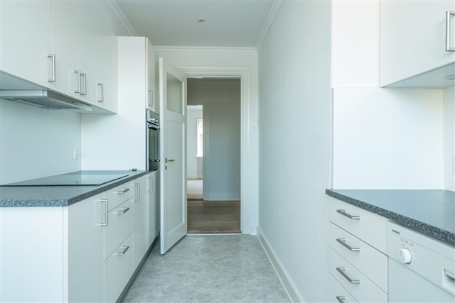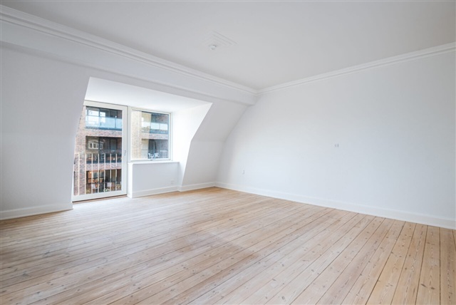 Situated on the fourth floor of a building on Vingårdsgade in the heart of Aalborg, this apartment offers close proximity to Budolfi Plads and the vibrant city center. Residents are within easy reach of numerous cafés, pedestrian shopping streets, grocery stores, the harborfront, and all the amenities the downtown area has to offer.Upon entering, you are welcomed by an entrance hall equipped with a wardrobe area suitable for shoes and outerwear. This hallway leads to the other rooms within the apartment. The spacious bedroom faces the property’s courtyard and features built-in sliding wardrobes. From the bedroom, there is access to a large, south-facing balcony measuring approximately 8 square meters. The living room is bright and airy, complemented by a French balcony that brings in additional natural light. The kitchen is fitted with a laminate countertop and includes built-in appliances such as an oven, a ceramic cooktop, a dishwasher, a fridge/freezer, and an extractor hood. The apartment includes a separate bathroom and toilet, and there is a washing machine available inside the unit.