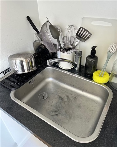 Plates, cutlery, and cookware included