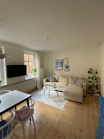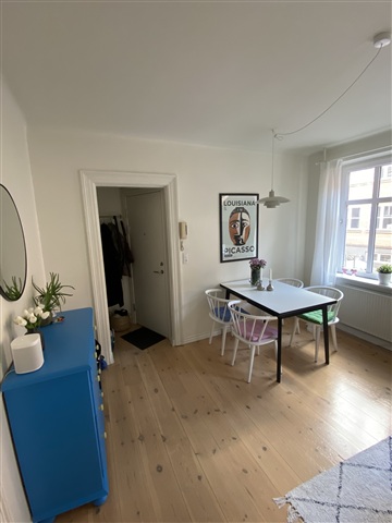 Bright and well-furnished 2-bedroom apartment in a quiet areaThe apartment consists of a spacious and bright living room with space for both a sofa and a dining table, a bedroom with good closet space, a functional kitchen with all necessary equipment and a small entrance hall with storage for shoes and outerwear.