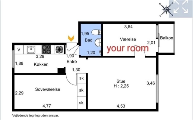Rent is 4000 kr. pr. m. (everything included, also Wi Fi).