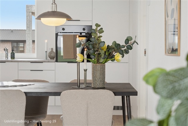 Explore the video tour below to get a feel for this 85 m², four-room show home. This residence is designed with an emphasis on daily comfort and an abundance of natural light, offering a balanced blend of practicality and a welcoming atmosphere. Its layout supports a contemporary lifestyle, granting generous daylight throughout and seamless indoor-outdoor living possibilities.At the heart of the home lies a spacious kitchen and living area that naturally draws everyone together-a versatile space ideal for cooking, socializing, and unwinding. Expansive windows flood the room with daylight and open directly onto the terrace. The property includes two well-sized bedrooms: a large master bedroom equipped with closet space and an additional room suitable for use as a child's bedroom, home office, or guest room. The bathroom is modern and efficiently organized, featuring bright finishes and ample room. Additionally, a utility room provides valuable storage and accommodates laundry appliances.