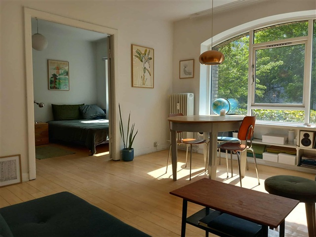 I want to exchange my rental apartment in Copenhagen for a rental home in either Knabstup, Regstrup, Mørkøv, Holbæk, Roskilde, Jyderup, Lejre or Hvalsø.My apartment is bright and cozy with a view of a small green area and a quiet street. It is a ground floor apartment with a few steps up to the door. It is 54 m2 with a living room, bedroom, kitchen, bathroom and hallway. The housing association is SAB/Stefansgården, and the neighbors in the hallway are nice and quiet. The rent including water consumption is about 4000 kr per month.