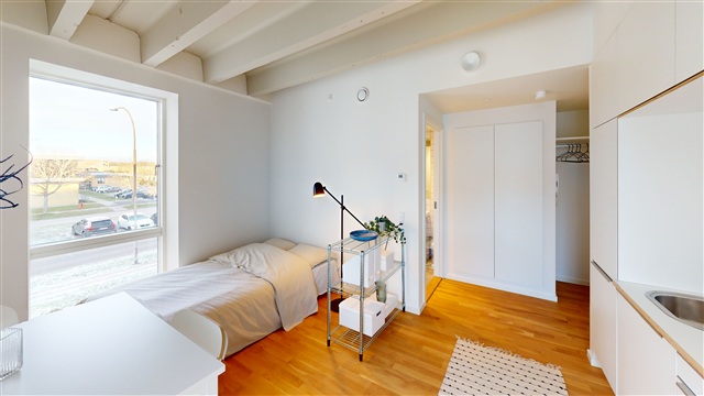 The homes have a good kitchen with a stove in connection with the living room.In addition, there is a spacious bathroom with a large shower. Both rooms and living rooms have nice parquet floors, while the bathrooms have tiled floors.
