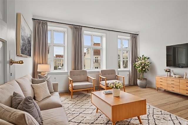 Lys 2-værelses på 56 m2 med højt til loftet og klassiske plankegulve – tæt på busforbindelser