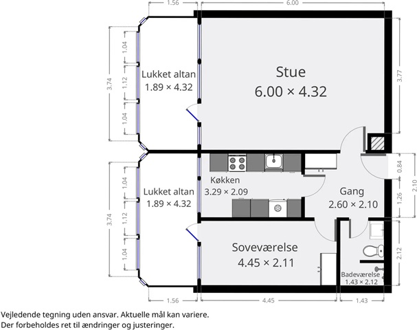 This charming two-room apartment is situated in Holmparken, Herning, making it an excellent choice for either an individual or a couple. The residence features two enclosed balconies overlooking lush green surroundings, while the kitchen is well-appointed with built-in appliances and includes a washer and dryer. The bathroom comes with a shower cubicle, and the living room is spacious, complemented by a smaller bedroom.Included with the apartment are a basement storage room and access to a shared laundry facility. Holmparken offers close proximity to shopping centers, schools, a golf course, and the motorway, ensuring convenience in daily life.