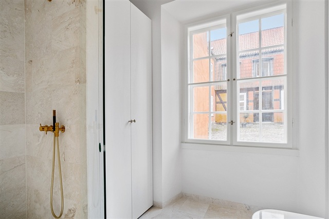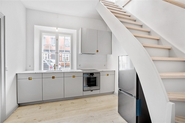 It is not possible to register an address in this apartment. No residence requirement.Rare and unique property on the rental market.The apartment is attractively located in 'Amaliepalæerne', very central in København K. The property dates back to the 18th century and is characterized by well-preserved original details, choice of materials of the absolute highest quality and attractive common areas.You arrive directly in the apartment's kitchen on the lower level. The kitchen is a joinery kitchen from Simonsen Czechura of the absolute highest quality and is made with white goods from the brand Gaggenau and fittings from Dornbracht. There is space here to furnish a smaller dining area in the kitchen.In extension of the kitchen is the apartment's bathroom. there is a separate shower cubicle, washing facilities and a window with a view of the yard.An internal staircase leads to the apartment's upper floor. Here, one large open room is arranged with window sections on both sides of the room. There is a nice amount of natural light here and a good opportunity to furnish several departments.The apartment is suitable for singles or couples. Contact us for further information.Not available as shared accommodation. Utility costs are not included in the rent.