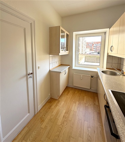 This appealing two-room apartment spans 60 square meters and offers a well-thought-out layout combined with a delightful ambiance. Upon entering, one is greeted by an entrance hall that serves as the central hub connecting all rooms and provides ample space for hanging coats and other outerwear. The living room is spacious enough to accommodate both a dining area and a comfortable seating arrangement. Similarly, the bedroom offers generous room for furnishing. The kitchen is bright and neat, featuring plenty of storage options. The bathroom is also well-lit, complementing the overall airy feeling of the apartment.Situated in the highly sought-after area of Vestbyen, the location is particularly desirable. Residents benefit from a short distance to various amenities including Aalborg Streetfood, swimming opportunities at Fjorparken, the marina, and numerous green spaces. Shopping facilities are within a few minutes' walk, and public transportation is conveniently accessible just outside the doorstep. These factors contribute to a quicker rental turnover in this part of Aalborg compared to other neighborhoods.