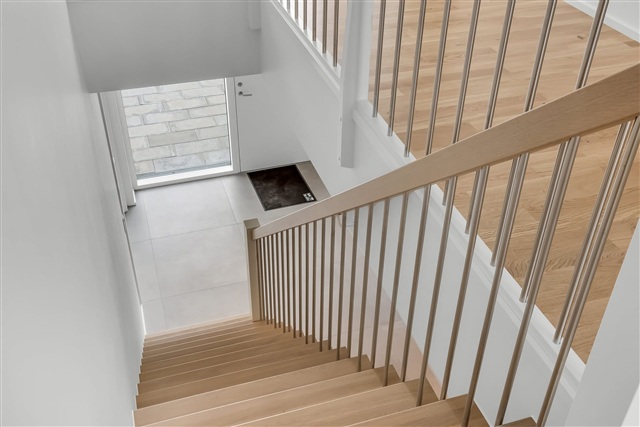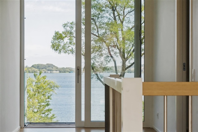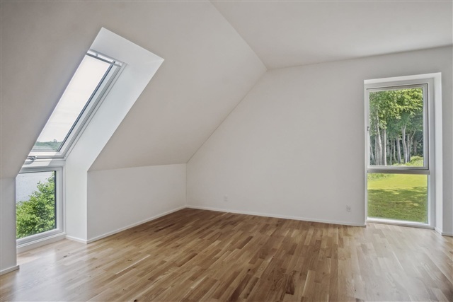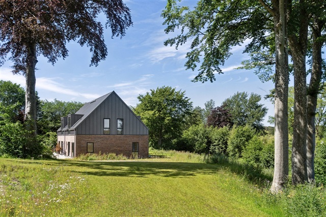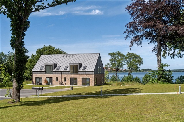 This residence is situated directly on the waterfront at the site where the former Aftægtsbolig once stood. Spread over two floors, the home encompasses a generous 185 square meters, featuring a private sleeping area on the first floor. On the ground level, a spacious kitchen and dining space seamlessly connects to the living room, offering an uninterrupted, picturesque view of Søndersø, allowing for peaceful enjoyment of the water scenery.The design of the Aftægtsbolig thoughtfully reflects the local heritage while incorporating modern elements. Inside, the layout prioritizes natural light and the surrounding inviting landscape, with large windows bringing the outdoors into the living spaces. A striking wooden staircase provides access to the bedroom zone upstairs.