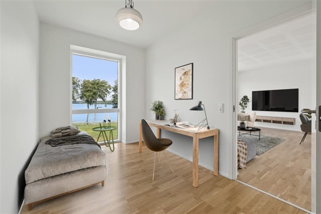 Teglgårdshaven stands out as perhaps the most prestigious and ambitious residential development ever seen in Viborg. Its location is renowned among locals who have enjoyed walking or jogging around Søndersø, offering one of the finest views available in the area. The new buildings, positioned at the corner of Søndersø, occupy the site once home to the distinctive red buildings where celebrated Viborg painter Lasse Winsløw worked from 1953 until 2006. These contemporary structures are designed with great respect for both the local environment and the original Teglgård. Adjacent to the site lies Strandparken, which features boat slips and a ramp for launching boats, adding to the special character of this attractive setting on the city’s edge amidst natural surroundings.Each of the three tower buildings contains 11 apartments, with this particular unit located on the third floor. Covering 115 m², the apartment includes three bedrooms and a walk-in closet, alongside a bathroom and an open-plan kitchen and living area that offers stunning panoramic views over Søndersø. High-quality fixtures and appliances come from trusted brands such as HTH and Miele.