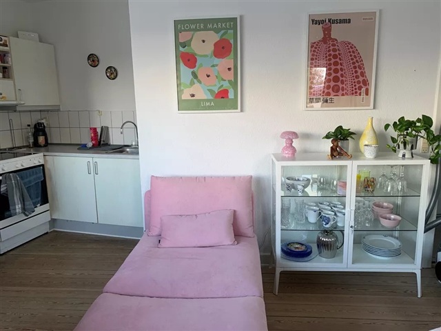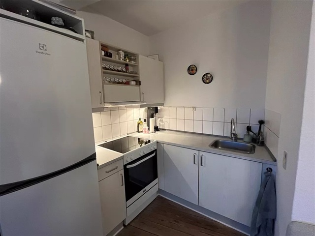 This beautiful 1-bedroom apartment offers beautiful wooden floors and a practical layout with a separate entrance. The kitchen is open to the living room, which can easily be furnished with both sleeping space and a dining table.