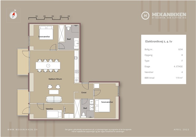 The rental apartments range from 61–121 m², divided into 2–4 rooms, and are designed with a modern touch featuring flexible layouts, open kitchen-dining areas, and integrated storage rooms – typically separated from the bedroom – with a focus on functionality, natural light, and a homely atmosphere.High quality characterizes the apartments: oak flooring with underfloor heating in all rooms, kitchens from HTH with Corian countertops, as well as built-in appliances including dishwasher, washing machine, and dryer.All apartments come with either a private balcony or access to shared roof terraces and green courtyards. Large windows ensure plenty of daylight in all living areas and bedrooms. Many apartments have façades facing both the courtyard and the street, allowing for optimal light throughout the day.OBS: The pictures are visualizations and NOT of the specific apartment!
