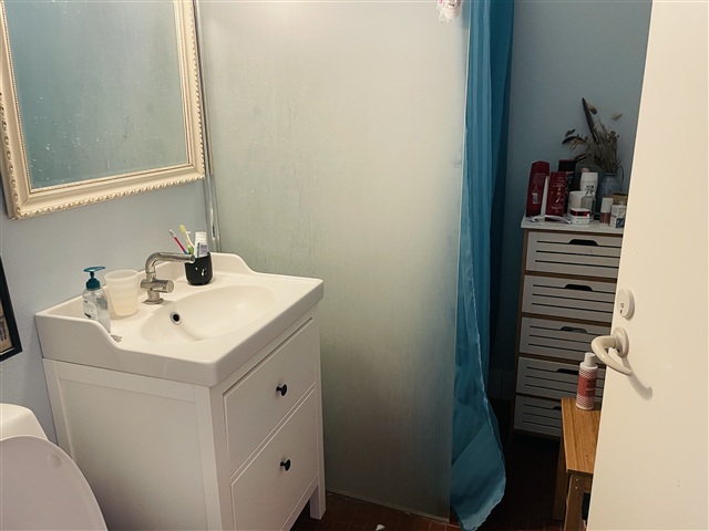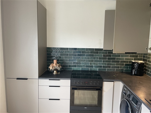 The apartment is located on the 3rd floor and consists of 1 room approx. 10m2, 1 room approx. 20m2, eat-in kitchen with refrigerator, stove and dishwasher from 2022, okay large toilet/bath with shower, bright and spacious living room approx. 30m2 with double doors to small balcony with sea view. The apartment has some furniture standing, including a bed. These are welcome to be used, but otherwise most - but not all - of the furniture can be moved out. Not all of the furniture is shown in the pictures.