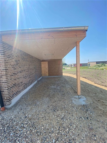 The development at Skrillinge in Middelfart consists of 47 single-family homes, each featuring four rooms and offering a gross living area of 100 square meters.Each residence is equipped with a kitchen that includes a refrigerator/freezer unit, an induction cooktop, an oven, a range hood, and a dishwasher. Within the entrance area, there are installations for a washing machine and a tumble dryer. These homes are constructed as low-energy houses incorporating solar panel systems to ensure very low energy consumption. A carport is provided with pre-installation for an electric vehicle charging station, and every house includes a shed along with a private terrace measuring 14.4 square meters, enclosed by hedges for privacy. Heating is supplied through district heating networks, and all properties have fiber optic and antenna connections, allowing tenants to select their preferred service provider.
