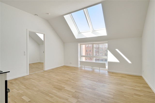 The apartment is located on the top floor and has skylights, which provide a bright and friendly indoor climate.
