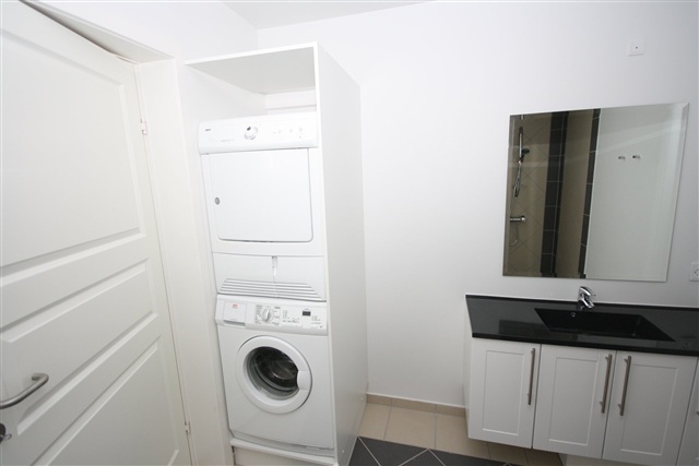 This attractive apartment features a private garden. The layout includes an entrance hall leading into a spacious living room and a modern, recently updated kitchen combined in an open-plan design. The bathroom is tiled and generously sized, equipped with both a washing machine and a tumble dryer. The large bedroom offers built-in wardrobes for ample storage.Situated in a tranquil and sought-after neighborhood, the location provides quick access on foot to grocery stores, the train station, the lakes, and a variety of charming shops in the city center. All essential kitchen appliances are included within the apartment.