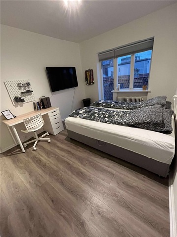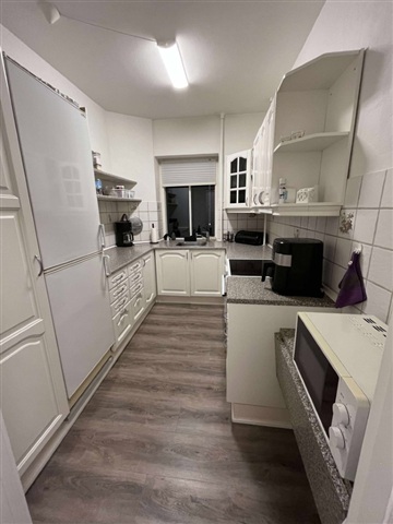 Step inside this well-designed apartment situated close to the pedestrian street. The layout features a hallway with built-in closets that leads into a white kitchen offering ample storage space. The bedroom is spacious enough to accommodate a wardrobe as well as a small office area if desired. Similarly, the living room provides generous space suitable for both a seating arrangement and a dining area.Both the bedroom and the living room open out onto a balcony, presenting a pleasant view over the center of Randers. The bathroom is fitted with light-colored fixtures, contributing to a bright and clean atmosphere.