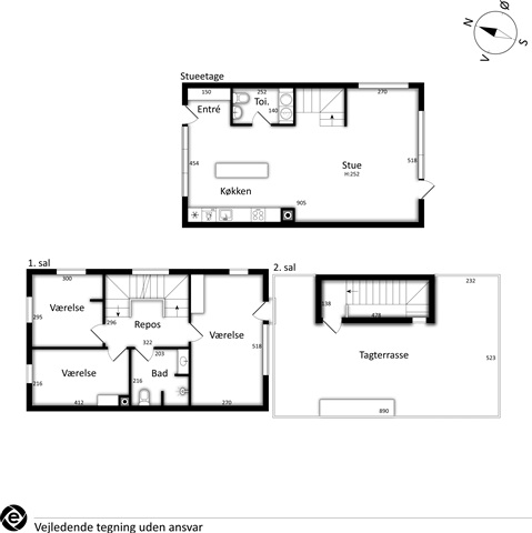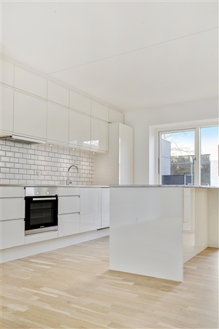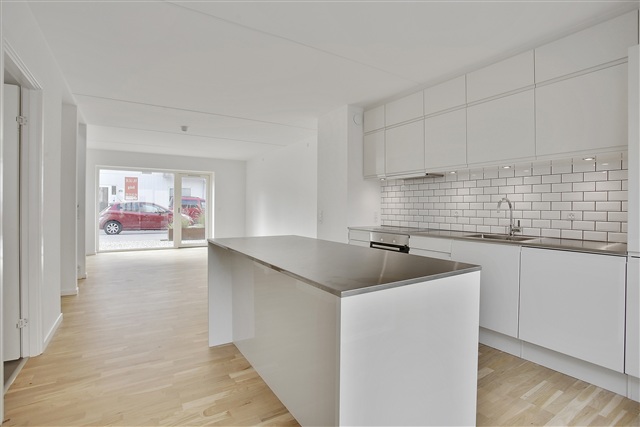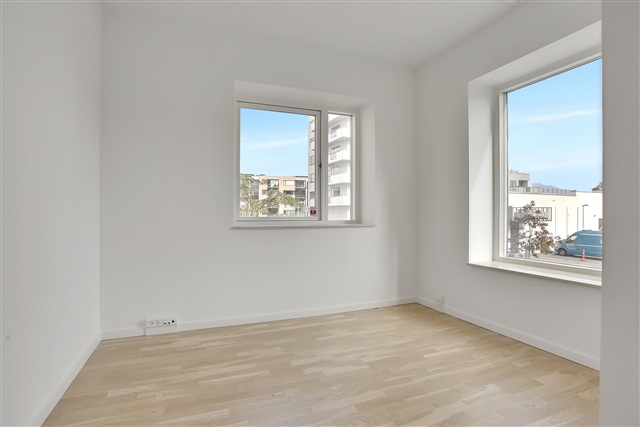 This beautiful, modern townhouse of 126 m² is built on three spacious floors and offers both a terrace on the ground floor and a private roof terrace on the 2nd floor. The main door opens up to a well-located entrance area, and one parking space is included on Krimsvej, which is included in the rent. There is also a playground and a waste station on the property. The ground floor offers a compact entrance hall that opens up to the central living room. A bright, open kitchen in extension of the living room. Here is also one of the house's two bathrooms, which is combined with a utility room, where both a washing machine and a dryer are installed. On the first floor, three rooms await: one bedroom and two smaller rooms, which work perfectly as children's rooms, an office or guest rooms. The second floor is where you can relax under the open sky on the private roof terrace, which invites you to enjoy both morning sun and evening coziness. The townhouse was built in 2015 and features light parquet floors and stylish, gray tiles in the bathroom and toilet, all in a modern and timeless design.If you want to read the description in its original language that is also possible. Read original description