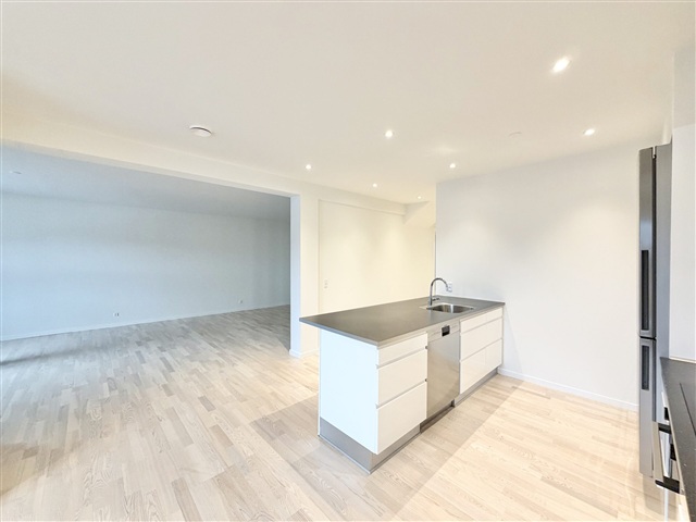 Located close to the harbor in Svendborg and just a short walk from Svendborg Station, this recently refurbished three-room apartment spans 147 m² and is situated on the second floor. Access to the apartment is via the staircase landing, opening into a spacious entrance hall equipped with built-in wardrobes and ceiling spotlights.The living room is generously sized and seamlessly connects to a large, modern kitchen. The kitchen features ample cabinet space and includes all essential appliances, such as a dishwasher. Additionally, there is a functional island with seating, enhancing both the workspace and social area.