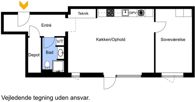 The kitchen is in open connection to the living area/living room. The bathrooms are