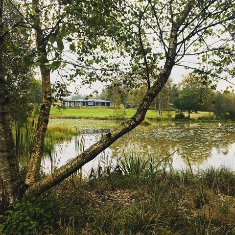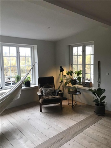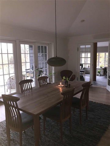 The house is located in the middle of the forest south of Silkeborg on 5 hectares of land bordering the Salten River and with its own lake.There are two separate homes, each with its own entrance. Both have a view of the lake and the forest, which daily provides special nature experiences with, among others, deers, cranes, kingfishers, otters and eagles, all of which breed in the area.