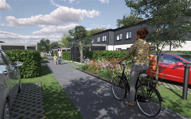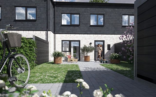 You enter the entrance hall with built-in cabinets for the technical installations as well as a washing machine and dryer. From here you will also find the bathroom.From the entrance hall, you have access to the open and bright family room with kitchen, a good dining area with large floor-to-ceiling windows and the possibility of a cozy sofa corner. From the living room there is access to the large back terrace. Furthermore, there is a large bedroom with three built-in wardrobes and a larger extra room.