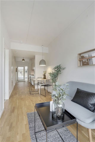 The apartments feature large windows, beautiful and easy-to-maintain materials, stylish kitchen from INVITA with handleless fronts, under-cabinet spotlights and energy-efficient appliances from Siemens and Exhausto. There's also a large bathroom with a washing machine and dryer. Here you can add your personal touch to the minimalist look and make it your own.