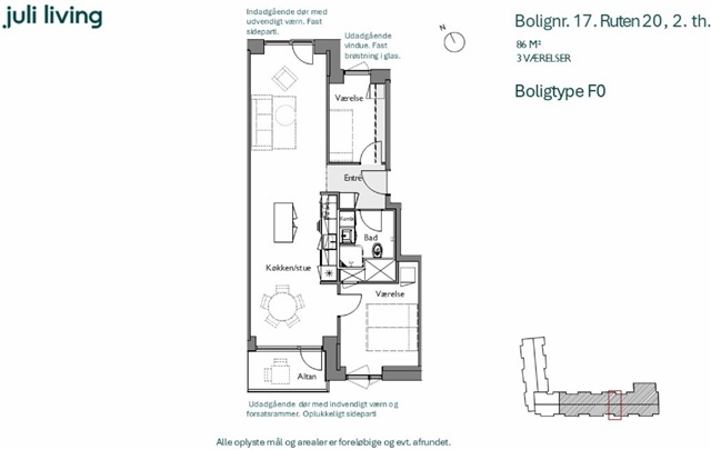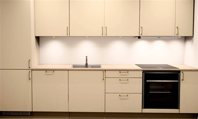 This charming three-room apartment offers a bright and welcoming living space that suits anyone seeking comfort and style. The residence features a generously sized bedroom alongside an open-concept kitchen and living area designed to accommodate both a dining table and a cozy seating arrangement, making it perfect for relaxing or entertaining guests. The kitchen comes equipped with a full range of beige-colored integrated appliances, delivering a sleek, contemporary look throughout the space. Additionally, there is access to a private balcony where residents can enjoy sunlight and pleasant views. The bathroom is practical and includes a combined washer-dryer unit, enhancing daily convenience.Situated within the Fløjhusene complex, these family-friendly rental units are one-story apartments offering either two or three rooms, crafted entirely with high-quality materials. Sizes range between 70 and 101 square meters, and every apartment boasts its own balcony or terrace. The interiors are finished with durable, reddish-brown wooden floors that provide both resilience and aesthetic warmth, while also allowing residents to admire views of the peaceful green courtyard.