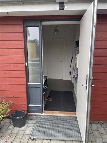 Welcome to an independent annex, with its own apartment. The house was built in 2012 and has a large kitchen, family room, large bathroom and bedroom. In addition, an extra room (roof windows, not approved as a residence) which is used as an extra living room.The property has a shared garden/yard area and you can have your own furniture etc. in front of the house. Beautiful property centrally located in Hvalsø, walking distance to the station and shopping. Parking and possibility of having a washer/dryer in a separate laundry room.