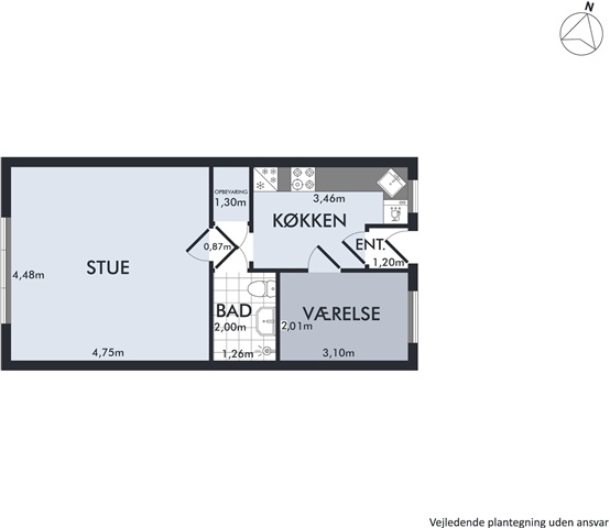 2 room modern apartment in Valby ready to move in February 1st 2026.Very close to bus, train station and green areas.