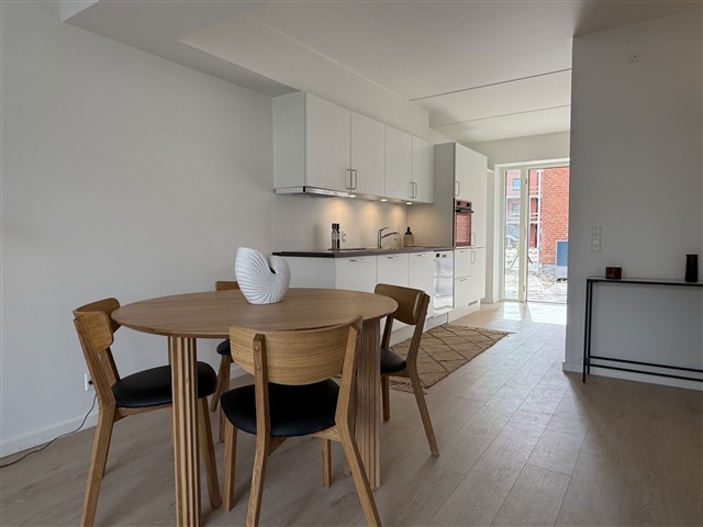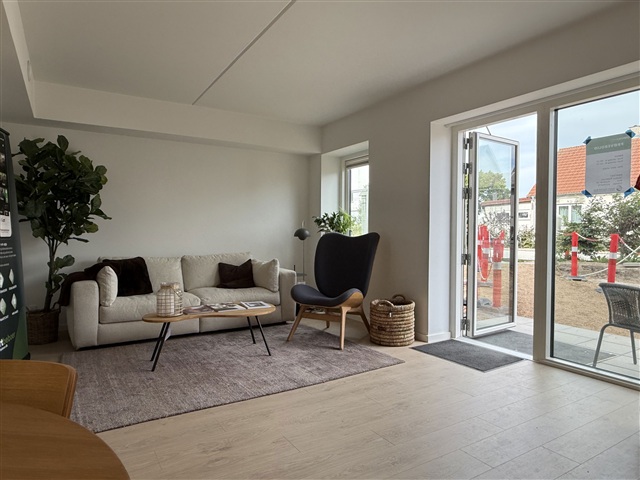 Very spacious 2-bedroom apartment on the 2nd floor with pitched ceiling, skylight and large south/west-facing balcony with sun all day. The entrance has wardrobe space and is located in an open extension of the kitchen-family room and living room, where there is plenty of space for both a dining table and lounge. The Swan kitchen is made of light materials with a dark worktop and integrated white goods. From the entrance/kitchen there is access to the spacious bedroom with three built-in cupboards. The bathroom is spacious with grey tiles, a glass-enclosed shower cubicle, a wall-mounted toilet and bathroom furniture in the same design as the kitchen. The entire home has underfloor heating controlled via thermostats in all rooms, a ventilation system and a high standard of insulation, which provides a comfortable and energy-efficient home. Common facilities in Grøndals Gård As a resident of Grøndals Gård, you have access to a large, green courtyard with cosy paths and living areas that invite you to socialise and enjoy the outdoors. Here you will also find a spacious shared orangery with space to eat, socialize, play board games or meet spontaneously with your neighbors. The homes include parking, and charging stations from Clever have been installed, making everyday life both easy and future-proof.If you want to read the description in its original language that is also possible. Read original description