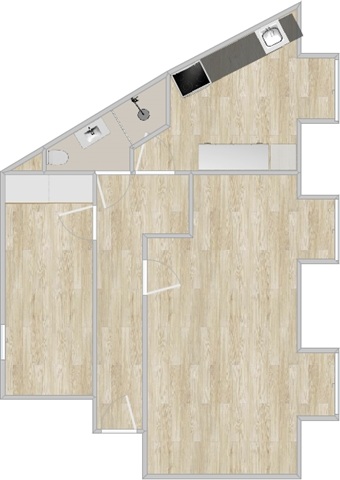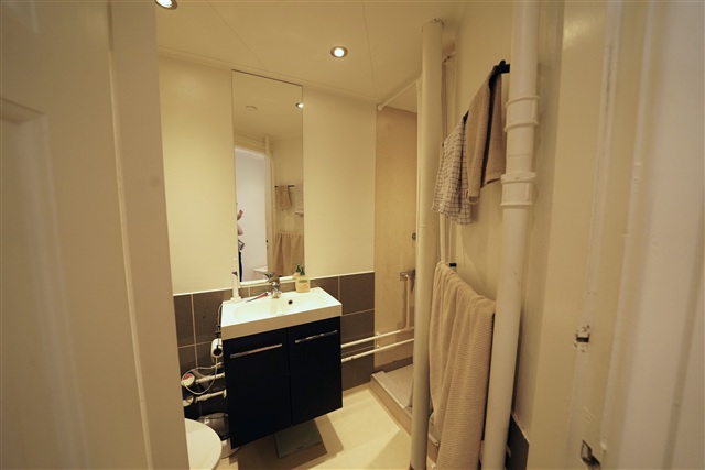 When you enter the apartment, you enter a spacious hallway, where there is plenty of space to hang your outerwear. The apartment has a good kitchen with a good workspace and white goods such as a fridge-freezer, stove and extractor hood.