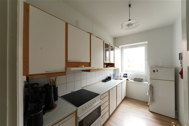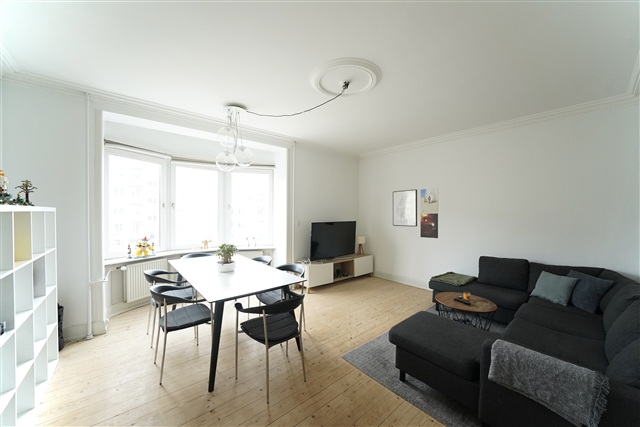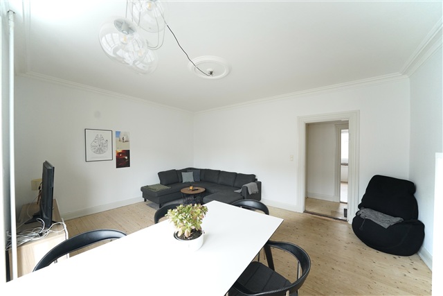 Apartment located at Sønderbro and close to Tivoli Parken. Within walking distance you will find shopping opportunities, fitness centers, cozy cafes, shopping areas, Tivoli Parken, Kennedy Arkaden and public transport. If you have a car, there are also good parking options near the apartment.The apartment presents a spacious hallway with plenty of space for storing clothes. The centerpiece of the apartment is the large, bright living room with stucco and rosette in the ceiling, which allows for creative interior design thanks to the good size and the fantastic light from the large windows. The bedroom faces the courtyard and has large built-in wardrobes with plenty of storage space. The kitchen is well equipped with a stove, hood and fridge/freezer as well as good storage space.