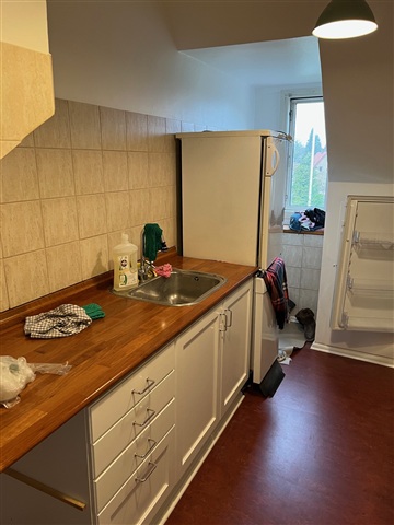 Bright 2 bedroom apartment of 52 sqm. Good layout with 2 almost equal sized rooms. Private toilet and bathroom. Well-functioning kitchen with gas stove/oven, refrigerator, separate freezer and a dishwasher. Access to laundry in basement. Access to attic for storage. Bus stop right by the front door. For rent for 2 years. Pets not allowed.If you want to read the description in its original language that is also possible. Read original description