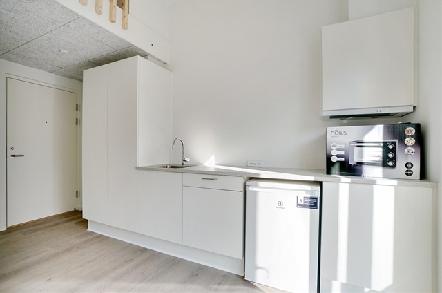 This studio apartment features a kitchen equipped with a two-zone cooktop, a refrigerator with a freezer compartment, and a ventilation hood. It includes a private bathroom with a separate shower area and toilet, recently renovated to a contemporary standard, offering ample storage space. The residence opens onto a spacious balcony accessible through two doors, providing a bright and open ambiance throughout the living space. Please note that the photos shown are from a comparable unit within the same building.The property offers multiple communal areas both indoors and outdoors. Inside, there are three large shared rooms primarily used as laundry facilities, though several tables and chairs are available for residents to use while waiting. Outside, occupants can enjoy the green spaces and a basketball court, which is perfect for recreational activities with neighbors. Parking spaces are available for rent, and a locked bicycle shed is provided for secure bike storage.