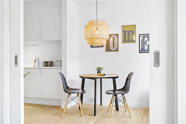 to a shared roof terrace and atrium courtyard. In the listed building facing Amagerbrogade, a large common room with a kitchen has been set up. The basement is equipped with bicycle parking, a communal laundry and a storage room, and it will also be possible to rent a parking space in the underground parking garage. The homes are centrally located on Amager, close to Amagerbrogade's vibrant café and shopping environment. The area has undergone rapid development in recent years and is therefore extremely attractive. Less than 500 meters from Amager Center, you will find a wealth of shops, cafés and shopping opportunities. In addition, you are well connected to the rest of Copenhagen via the metro (M1 and M2), buses (5C) and good cycle paths, making it easy to reach the inner city, Christianshavn and much more in a few minutes. If you prefer nature experiences, Amager Strandpark, Amager Fælled, Kløvermarken and Stadsgravene are within 3 km of the homes. There are many good educational institutions nearby. For example, KUA