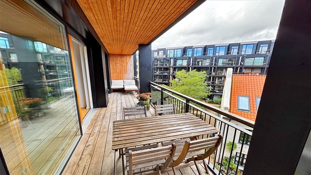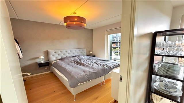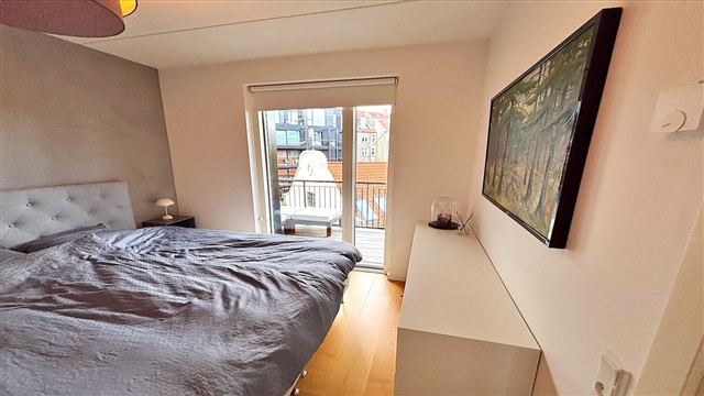 The apartment is located in a modern building with elevator. It consists of an entrance hall, a smaller bedroom and a bathroom with shower and washing machine. A large kitchen-dining room with a beautiful kitchen and large windows on both sides. From the kitchen-dining room there is access to a large balcony with a view of the courtyard. Master bedroom with built-in wardrobes and also access to the large balcony. The property is located in the extremely popular Vesterbro, with lots of cozy restaurants, cafes and popular shops. Short distance to the nearest Metro (Enghave Plads).