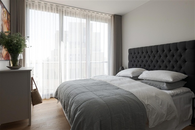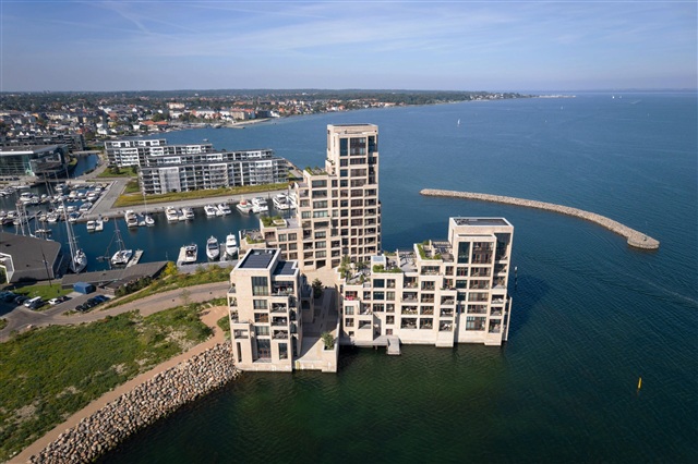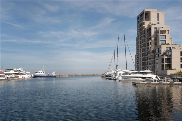 This spacious apartment, covering 189 m², is situated in Tuborg Havnepark, surrounded by sea and salt marshes. The boundary between indoor and outdoor living blurs here, accompanied by stunning views that stretch from the Copenhagen skyline through Tuborg Harbor and along the northern coastline. Despite its peaceful and secluded location away from the city buzz, Hellerup, and Nordhavn, the property remains just a short walk from shopping, cafés, restaurants, and cultural venues.Inside, the layout features a generous entrance hall with closet space, three bedrooms, an open-plan kitchen complete with an island and dining area, a living room, two bathrooms, and a guest toilet. Depending on sunlight and wind, two well-designed balconies provide the perfect spot to take in the impressive vistas. Floor-to-ceiling windows throughout ensure abundant natural light fills every room. The materials used are of premium quality, exemplified by the Unoform kitchen, and the overall style exudes sophistication without compromises.