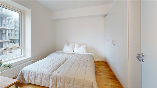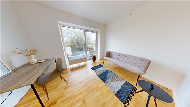 Erda-2 consists of good, well-furnished apartments. There are different types of interior design, which means that there is a home for every taste and target group. All the homes have a good interior design and access to a private terrace, balcony or roof terrace. The homes all have a good kitchen from Invita with all white goods. The kitchen is in open connection with the living area/living room. The bathrooms are spacious with a large shower and a washing machine. Both bedrooms and living rooms have nice parquet floors, while the bathrooms have tiled floors with underfloor heating. The property is built with a lovely courtyard with a small playground. – Ready-to-move-in apartments 🏠 – Possibility of renting a parking space in the basement 🚗 – You get your own terrace or balcony ☀️ - Short distance to Aarhus C 🚲 NOTE: The pictures and 3D scans may be from a similar sample home.If you want to read the description in its original language that is also possible. Read original description