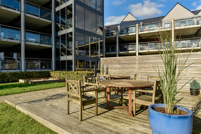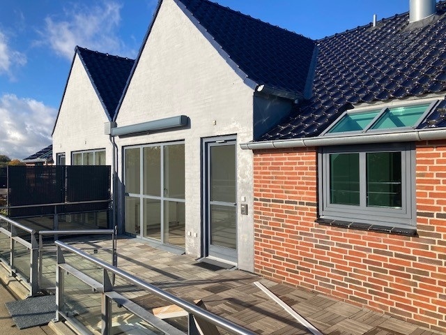 Completely unique apartment with a good and central location in Herning. Located on the 3rd floor - with elevator, intercom, private balcony/terrace and good parking. In addition, good storage room in the basement.The apartment has a very special atmosphere, is bright and friendly - and furnished with an entrance hall with wardrobe space, kitchen and living room in one. Bathroom and 2 bedrooms.