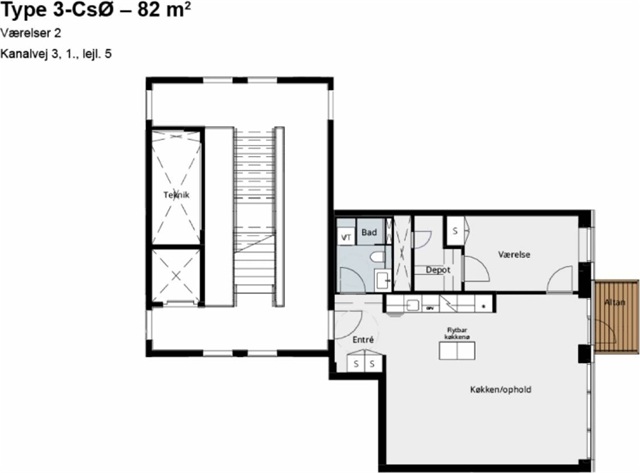 Stor 2-værelses lejlighed i Kgs. Lyngby
