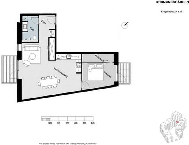 Located in the heart of Bagsværd, this appealing property dates back to 2019. All residences on Krogshøjvej belong to a section of buildings known as Købmandsgården, which benefits from abundant natural light and offers impressive views. The building features protruding facades and varying heights—rising up to nine floors—which together create an engaging and dynamic appearance. While the design exudes architectural elegance both inside and out, it also meets the demands of today’s modern families in terms of practicality. The site includes an elevated atrium courtyard adorned with inviting flower beds and seating areas, enhancing the communal outdoor space.These 154 desirable apartments come in a range of sizes, from 57 to 133 square meters, offering configurations from two up to five rooms. This variety ensures the development caters to a wide demographic, including singles, families with children, young couples, and seniors, fostering a diverse resident community. High-quality finishes are found throughout the homes, such as in-unit laundry facilities, Siemens appliances, kitchen cabinetry by Svane, and functional closet space in the bedrooms. Additional amenities include an elevator, underfloor heating, intercom systems, bicycle parking, and the option to rent a parking space in the underground garage. The location is highly convenient, with Bagsværd Lake, shopping options, schools, and daycare centers all within approximately one kilometer. Public transportation—bus connections, an S-train station—and the Hillerød motorway are also within the same distance, enabling a 15-minute commute to Copenhagen. This residence offers an ideal choice for quality-conscious families seeking accommodation near everyday conveniences.