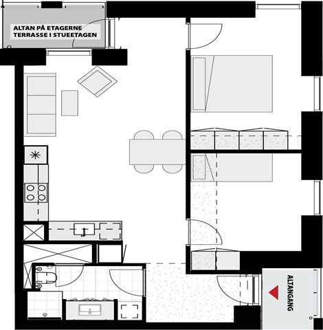 The bright, Nordic design language characterizes all homes in ERDAHUS. The classic oak parquet floors give the rooms a natural atmosphere, while the windows ensure optimal light. Ventilation and heat recovery ensure a healthy and pleasant indoor climate. Kitchen and bathroom elements are in a stylish design from Invita, while the white goods are from Siemens. The bathroom with underfloor heating and easy-to-maintain tiles contains a toilet, sink and shower cubicle as well as a washbasin. The property winds around a green area. Towards the courtyard, the facade consists of large balconies. At the top, the property slopes downwards, and up here the apartments are equipped with large, private roof terraces. 🏢 The apartment is located on the 5th floor.🚌 Good options for public transport to Aarhus city center or