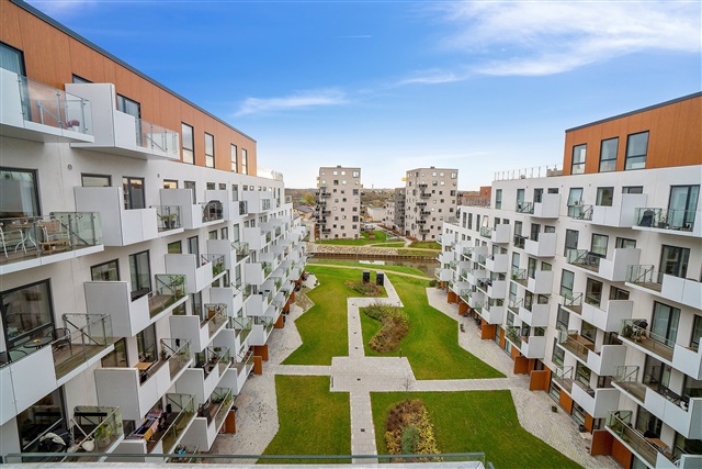 The bright, Nordic design language characterizes all homes in ERDAHUS. The classic oak parquet floors give the rooms a natural atmosphere, while the windows ensure optimal light. Ventilation and heat recovery ensure a healthy and pleasant indoor climate. Kitchen and bathroom elements are in a stylish design from Invita, while the white goods are from Siemens. The bathroom with underfloor heating and easy-to-maintain tiles contains a toilet, washbasin and shower cubicle as well as a washbasin. The large balconies of 5-6 m² blend beautifully with the building. The balconies are covered with non-slip hardwood floors. The apartment is located on the 4th floor and has a good view. - A pleasant bike ride of 10 minutes and you are in Aarhus C 🚲 - Small pets are allowed 🐶 - Possibility of renting a parking space in the underground parking garage. - NOTE: Water and heating are paid directly to the utilities.If you want to read the description in its original language that is also possible. Read original description